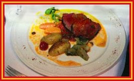 Gene and Marty are served the spectacular Anniversary Cake with raspberries and myrtilles.