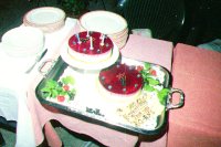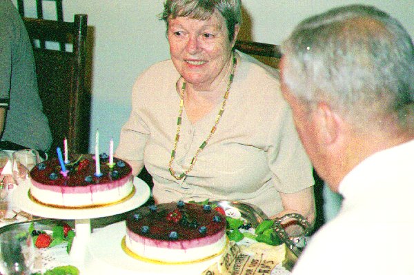 Gene and Marty are served the spectacular Anniversary Cake with raspberries and myrtilles.
