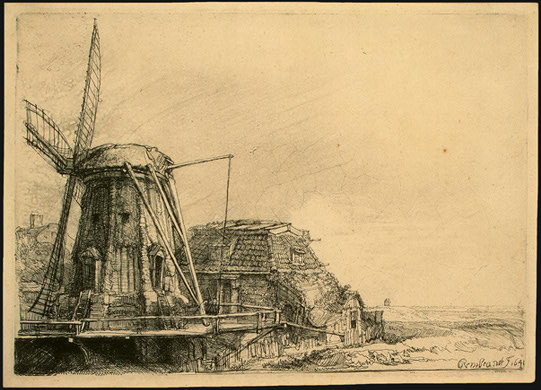 Rembrandt van Rijn (1606 - 1669) The Windmill, 1641 etching, plate: 14.6cm x 20.6cm collection of the National Gallery of Art (size 73k) |